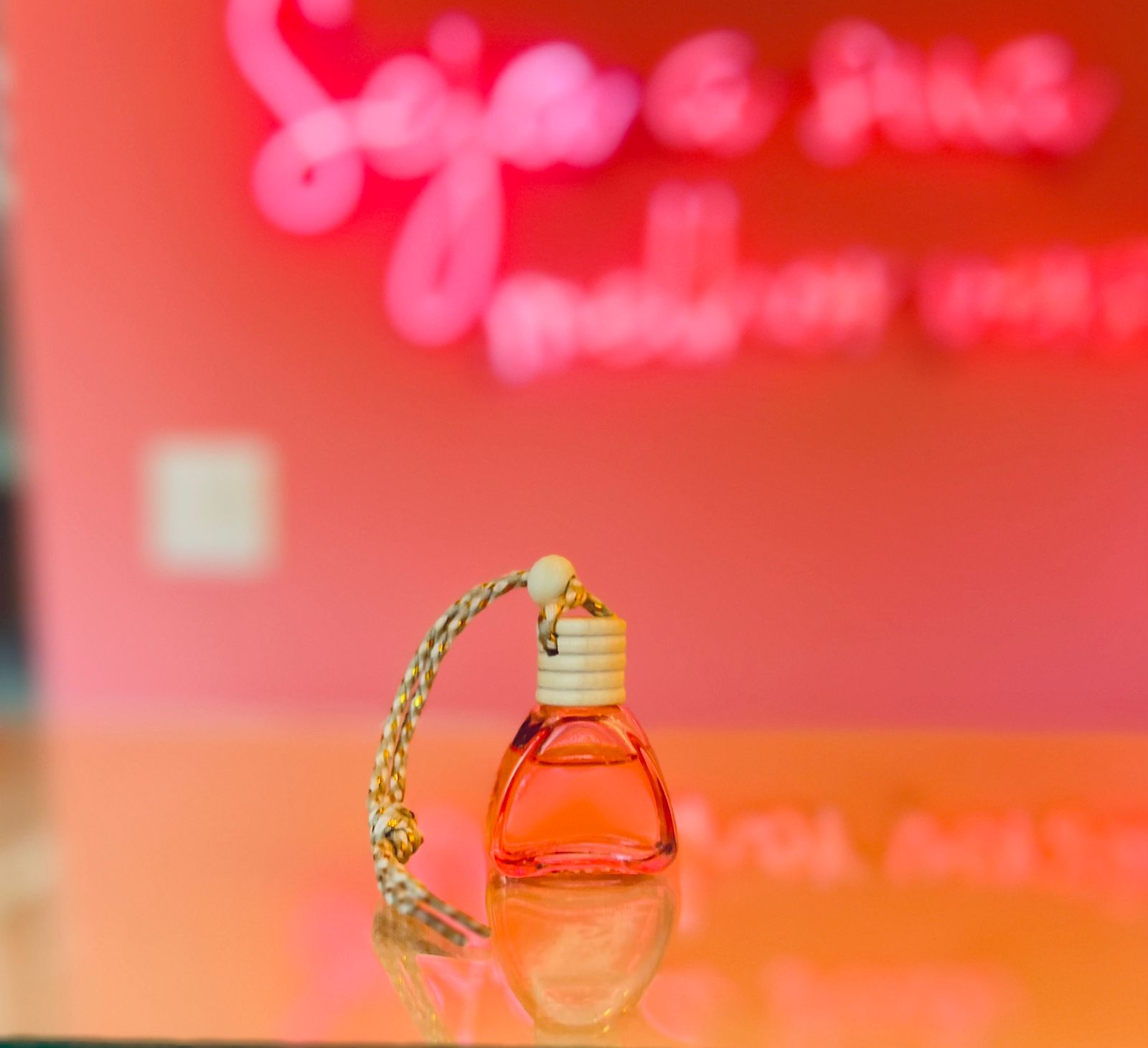 Pingente para pendurar no retrovisor do carro com o cheirinho da nossa Loja e de nossas embalagens.